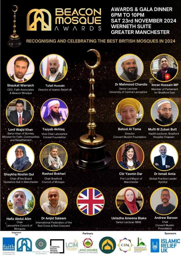 The British Beacon Mosque Awards, organised by Faith Associates, takes place immediately after the Mosque Expo with a gala dinner ceremony, announcing the winners from hundreds of nominees across a range of categories including the Best Youth Service and Best Run Mosque. The awards attract over 300 representatives from the best Islamic centres in the UK.